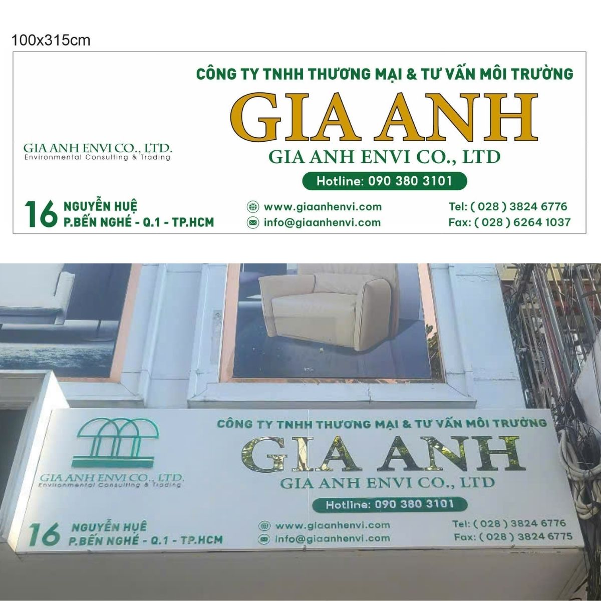 Thi công bảng hiệu công ty – Sự chuyên nghiệp trên “Đất Vàng” Nguyễn Huệ – Gia Anh Envi