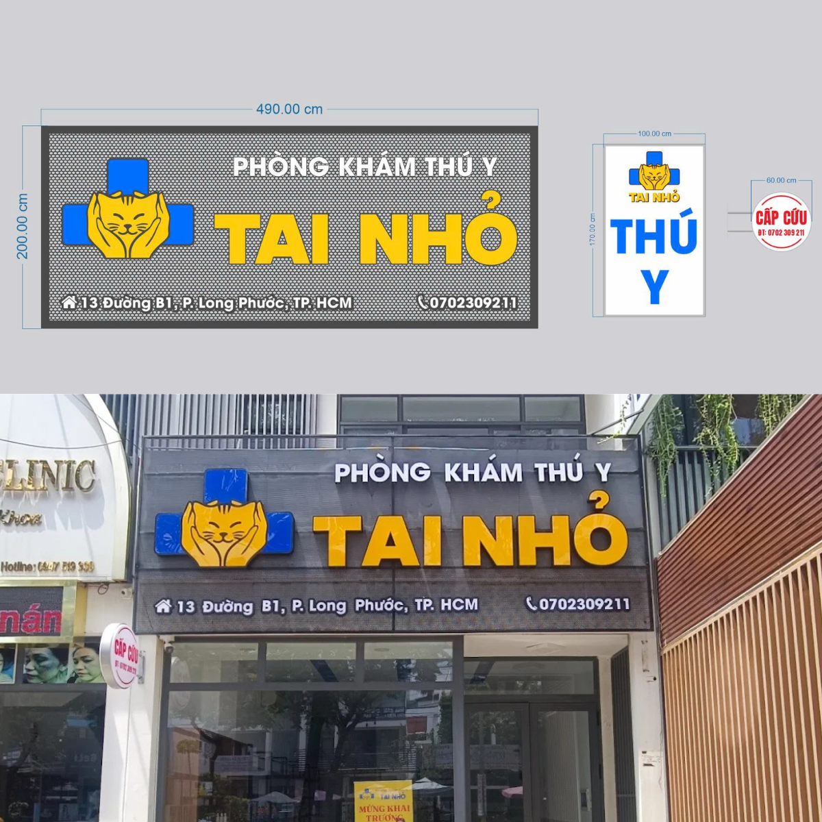Trong lĩnh vực chăm sóc thú cưng, sự tin cậy và thân thiện là yếu tố then chốt. Dự án bảng hiệu Phòng Khám Thú Y TAI NHỎ (Long Phước, TP.HCM) do Quảng Cáo Duy An thực hiện đã truyền tải hoàn hảo tinh thần đó thông qua ngôn ngữ thiết kế hiện đại và vật liệu bền bỉ.
